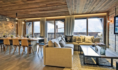 L'appartement Mer Y Bel se situe dans un secteur recherché, apprécié pour sa qualité de vie. Sa localisation offre un accès immédiat aux remontées mécaniques, aux commerces, aux restaurants et aux services, tout en garantissant un environnement calme. Il prend place dans une résidence de prestige, synonyme de confort et d'élégance. D'une superficie d'environ 118 m², il propose un agencement soigné. Le hall d'entrée mène vers une vaste pièce de vie lumineuse, comprenant un séjour et une cuisine moderne ouverte. Un balcon prolonge cet espace et apporte une belle clarté. Le bien dispose de trois chambres, dont une suite familiale avec salle d'eau privative, ainsi qu'un coin montagne aménagé. Trois salles de bains, un WC indépendant et de nombreux rangements complètent l'ensemble. Les prestations incluent deux stationnements couverts et un local à skis privatif.