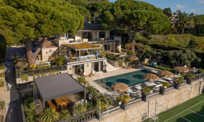 Située au calme absolu dans la pinède et en deuxième ligne, cette charmante propriété vue mer d'environ 200 m² offre 5 chambres dans la villa principale et un studio indépendant. Récemment rénovée, elle bénéficie d'un agréable espace extérieur avec barbecue et terrain de pétanque. Une méhari de collection, des vélos, ainsi qu'un château gonflable pour enfants sont mis à votre entière disposition.