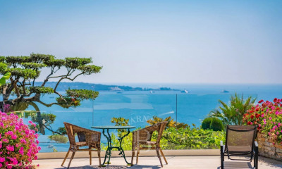 Au calme absolu, entourée de verdure et d'essences méditerranéennes, somptueuse villa contemporaine exposée sud bénéficiant d'une incroyable vue panoramique sur la mer et les Alpes. Au rez-de-chaussée, un séjour/salle à manger donnant accès sur une terrasse vue mer, une cuisine américaine entièrement équipée, deux chambres en-suite avec salles de douche dont une master, une buanderie. Au rez-de-jardin : une salle de sport, deux chambres ainsi qu'une salle de douche indépendante. Possibilité de rajouter un lit double selon les besoins. A l'extérieur, piscine au sel à débordement, barbecue ainsi qu'un garage avec borne de recharge électrique.