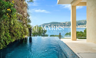 Proche des plages de Saint-Jean-Cap-Ferrat, cette villa luxueuse offre une vue imprenable sur la mer Méditerranée et Monaco. Son architecture maximise l'emplacement, avec des fenêtres qui inondent l'intérieur de lumière naturelle et offrent des vues maritimes depuis presque toutes les pièces. Un ascenseur relie les trois étages, menant à une superbe terrasse sur le toit. Des allées paysagées mènent à la grande piscine, qui surplombe la mer en contrebas. Récemment rénovée, la villa présente un design contemporain impeccable. Le séjour, la cuisine ouverte et la salle à manger sont finis avec goût, permettant au paysage d'occuper le devant de la scène. Elle comprend cinq chambres en suite, chacune avec dressing et salle de bains. La suite principale dispose d'une terrasse privée et d'un bureau, tandis qu'une autre chambre est disponible pour les enfants ou le personnel. Proposée à la location avec des services hôteliers de luxe pour un minimum d'une semaine, la villa peut accueillir jusqu'à 12 personnes.