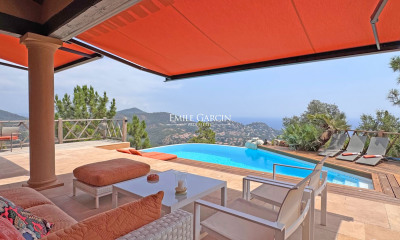 Maison moderne à Théoule-sur-Mer avec piscine à débordement et vues imprenables sur la mer et le Massif de l'Esterel Découvrez cette sublime maison moderne, entièrement rénovée avec des matériaux haut de gamme. Idéalement située à seulement 10 minutes en voiture du centre-ville de Théoule-sur-Mer et à 5 minutes des plages, cette propriété est parfaite pour vos vacances sur la Côte d'Azur. Profitez d'agréables moments au bord d'une piscine à débordement, offrant des vues panoramiques sur la mer Méditerranée et le majestueux Massif de l'Esterel. Cette maison spacieuse peut accueillir jusqu'à 10 personnes, avec 5 chambres élégamment décorées et 4 salles de bains modernes, garantissant confort et intimité pour tous les invités. Les deux salons lumineux et accueillants sont parfaits pour se détendre en famille ou entre amis. La cuisine entièrement équipée vous permettra de préparer de délicieux repas avec des produits locaux. À l'extérieur, la piscine à débordement invite à la baignade et à la détente, entourée de transats pour profiter du soleil. Pour des soirées estivales, un barbecue est à votre disposition, idéal pour des repas en plein air. De plus, un home cinéma vous promet des moments de divertissement inoubliables. Le parking privé peut accueillir jusqu'à 5 ou 6 voitures, offrant une grande commodité pour les groupes. Que vous soyez en quête de détente ou d'activités en plein air, cette propriété moderne et luxueuse est l'endroit idéal pour des vacances mémorables sur la Côte d'Azur. Réservez dès maintenant votre séjour dans cette magnifique maison à Théoule-sur-Mer et profitez d'un cadre de vie exceptionnel pour des vacances inoubliables.