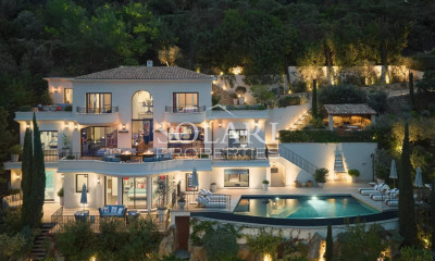 Théoule-sur-Mer : sublime villa pied dans l'eau de 375 m². Rare sur le secteur, dans un domaine fermé proche des commodités, superbe pied dans l’eau moderniste et méditerranéen des années 1920 entièrement rénové en 2011. La villa se compose de lumineuses pièces de vie, 5 chambres et 5 salles de bains. Son terrain de 6 000 m2 comprend une piscine et un accès direct à la mer par les rochers ainsi qu'une belle petite crique confidentielle, quasi privative, à l'abri des regards. La villa a une capacité d'accueil de 10 personnes.