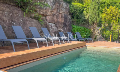 Nichée au sommet d'une colline entre la baie de Cannes et la baie de Figueirette, cette villa provençale offre une vue panoramique sur la baie de Cannes et les montagnes de l’Esterel. La propriété dispose d'un double séjour avec espace TV et un coin repas ainsi qu'une grande cuisine avec salle à manger, le tout ouvrant sur la grande terrasse avec piscine chauffée à débordement (au sel). Au même niveau se trouvent 3 chambres en-suite, chacune dotée de sa propre douche et/ou baignoire et WC. Une quatrième chambre à l'étage avec terrasse privée est idéale pour profiter de la vue. Le rez-de-chaussée abrite un appartement indépendant, comprenant une chambre avec salle de douche, ainsi qu'un canapé lit pouvant accueillir 2 personnes supplémentaires si besoin. À l'extérieur l'espace piscine offre une vue imprenable sur la baie de Cannes, et offre divers espaces de détente. La villa est entièrement climatisée, et bénéficiera prochainement de nouveaux aménagements, avec un renouvellement du mobilier extérieur et quelques améliorations apportées à l’intérieur, afin d’offrir un cadre encore plus confortable et harmonieux. Le parking couvert permet d'accueillir plusieurs voitures, avec un accès facile.