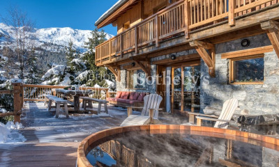 Au sommet de Méribel, sur la très convoitée Route de l'Altiport, se trouve le Chalet Arpège. Ce refuge confidentiel marie l'élégance des matériaux nobles à des prestations haut de gamme, pensées pour les amoureux de la montagne en quête de raffinement et de confort. À moins de 80 mètres du télésiège du Morel, il permet un accès immédiat aux pistes, tout en offrant un cocon intime et chaleureux. Avec ses 287 m² répartis sur quatre étages, il a été imaginé pour recevoir jusqu'à 14 personnes dans une atmosphère de maison de famille, où chaque espace invite à la convivialité. Dès l'entrée, les volumes sont généreux, finitions soignées, et une atmosphère feutrée qui se prolonge jusque dans les moindres recoins. Le salon, centré autour d'une cheminée, s'ouvre sur un balcon baigné de soleil, tandis que la salle à manger et la vaste terrasse extérieure offrent un décor parfait pour des déjeuners face aux sommets enneigés. Le chalet propose également un espace bien-être avec jacuzzi, idéal pour des instants de détente après une journée sur les pistes. Chaque chambre bénéficie de vues imprenables et d'un balcon privatif ainsi que d'une salle de bain ou salle d'eau. Les prestations pratiques, telles qu'un ski room, une buanderie et un garage, complètent ce tableau d'exception. Trois places de stationnement extérieures assurent un accueil aisé pour les invités, transformant chaque séjour en une parenthèse de repos et sans contraintes.