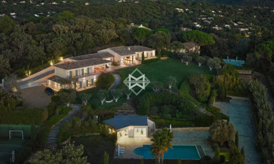 Découvrez une magnifique villa de 380 m² nichée face à la mer dans un écrin de verdure de 5 813 m², à quelques minutes de la plage de Gigaro, dans un domaine privé, idéale pour des séjours en famille ou entre amis. Située à La Croix-Valmer, cette propriété peut accueillir jusqu'à 14 personnes et offre un cadre de vie cosy avec une atmosphère paisible grâce à sa vue. Rez-de-chaussée : Le rez-de-chaussée comprend une grande pièce à vivre lumineuse avec un séjour avec cheminée ouvrant sur une terrasse couverte face à la mer avec un salon extérieur. Vous y trouverez également quatre chambres confortables, chacune disposant de sa propre salle de bain ou salle de douche, climatisation et ouvrant sur le jardin ou à une terrasse. La cuisine moderne et spacieuse, entièrement rénovée et parfaitement équipée, avec des appareils électroménagers de qualité. La buanderie adjacente totalement équipée. Premier étage : À l’étage, la chambre master bénéficie d’une grande terrasse avec une vue imprenable sur la mer, un lit king-size, une salle de bain attenante et un dressing. Une chambre enfant communicante est également disponible, ainsi qu’une autre chambre double avec salle de douche. Extérieurs : Les espaces extérieurs sont conçus pour offrir des moments de détente et de convivialité. Une piscine chauffée 6x12, avec transats et parasols. Un jardin aménagé avec un coin salon, une grande table, un patio avec barbecues, ainsi qu’un terrain de pétanque font partie des équipements. Le parking peut accueillir jusqu’à cinq voitures.