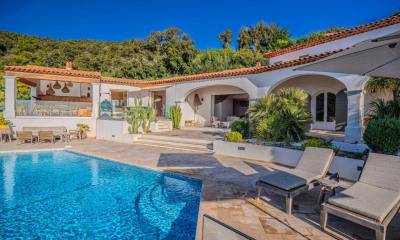 Proche des plages de Gigaro, dans un domaine privé clos de 10Ha avec hélisurface, cette propriété de prestige d'une surface totale de 470 m2 associe une villa principale avec 5 suites, une salle de sport. Une villa secondaire avec 2 salons et 2 suites permet d'accueillir des invités. Ces 2 somptueuses villas s'orientent sur la piscine chauffée et la vue du domaine. Service parahotelier, vidéosurveillance, conciergerie. Une mini moke peut être mise à la disposition des hôtes pour sillonner le domaine. Le bateau du domaine peut être loué avec skipper, garage et places de parking. A seulement 20 minutes de Saint-Tropez, ici tout n'est que luxe, calme et sérénité.