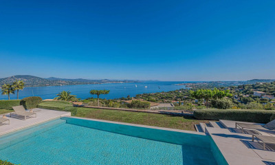 Située dans le domaine de Sinopolis, cette somptueuse propriété moderne offre des prestations haut de gamme et une vue mer panoramique à 180°. Elle se distingue par ses vastes espaces de vie, comprenant un double salon, une salle à manger élégante et une cuisine ouverte avec îlot central, une grande cave à vin et une chambre froide. Lounge/bar à vin à l'étage. Côté nuit, la villa dispose de 5 chambres dans la maison principale ainsi que 3 chambres supplémentaires réparties dans des appartements indépendants, offrant confort et intimité à chaque invité. Pour des instants de détente absolue, profitez d'une piscine chauffée à débordement (15x4m), d'une salle de sport, d'un sauna et d'une salle de massage. Un bien d'exception alliant luxe et sérénité. Numéro d'enregistrement : 83065000966EY