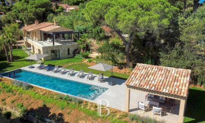 Nichée au sein d’un domaine privé à Gassin, à seulement quelques minutes du cœur vibrant de Saint-Tropez et des plages emblématiques de Pampelonne, cette villa neuve (2025) est un bien d’exception. Offrant une vue panoramique à couper le souffle sur le golfe de Saint-Tropez, elle promet un spectacle quotidien incomparable — figurant incontestablement parmi les trois plus belles vues de Sinopolis, avec un panorama unique sur la mer et le village de Saint-Tropez. Située au bout d’une voie privée, la propriété bénéficie d’un calme absolu, à l’abri de toute circulation. Sur le côté droit, le terrain est classé en zone verte (non constructible), garantissant de l'intimité et l’absence de constructions à proximité. Les espaces de vie sont conçus dans une parfaite fluidité : vaste double salon avec coin TV, lumineuse salle à manger et cuisine entièrement équipée. Un second salon avec bar, digne des établissements les plus en vogue, crée une atmosphère propice à la réception. Un véritable espace signature qui ne manquera pas de surprendre et séduire vos invités — un effet spectaculaire assuré, dans l’intimité de votre maison Chaque détail de cette villa a été pensé pour offrir un art de vivre exclusif. Alliant architecture contemporaine et finitions haut de gamme, elle propose cinq chambres spacieuses, dont une élégante suite parentale. Cette dernière dispose d’un vaste dressing sur mesure et d’une salle de bains spectaculaire, où l’on peut se détendre dans la baignoire tout en profitant d’une vue imprenable sur la mer une expérience rare et précieuse. Un appartement indépendant avec son propre salon, cuisine et chambre en suite offre polyvalence et intimité supplémentaire. Pour un bien-être absolu, la propriété comprend une salle de sport privée, un sauna et une salle de massage dédiée. À l’extérieur, une piscine chauffée avec vue mer sublime l’expérience et promet des moments inoubliables dans un cadre vraiment exceptionnel. Idéalement située à proximité des lieux les plus prisés de la Côte d’Azur, cette propriété est bien plus qu’une maison — c’est un art de vivre unique.