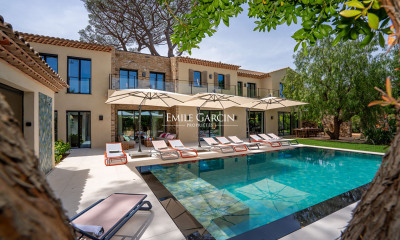 Propriété de prestige d'environ 600 m² avec vue sur la mer, située sur un terrain paysager de 1,4 hectare, à proximité immédiate de la plage et proche du centre de Saint-Tropez. La villa, aux finitions haut de gamme, propose une entrée avec un escalier central desservant au premier étage deux séjours donnant sur des terrasses extérieures aménagées, une salle à manger, une cuisine entièrement équipée ainsi que la chambre principale avec balcon filant et salle de douches. Au rez-de-jardin : une galerie desservant cinq suites, chacune avec salle de douches ou baignoire et toilettes privatives. Des toilettes invités se trouvent sur ce même niveau. La propriété comprend également une buanderie, un court de tennis, un pool house équipé, et une piscine. Le parking couvert peut accueillir trois véhicules. Le personnel de maison bénéficie de deux villas indépendantes. Période minimale de location en juillet et août de deux semaines. Les prix varient en fonction de la période de location - seuls les tarifs minimums sont renseignés en annonces : nous vous invitons à nous consulter pour toute demande de tarification. Veuillez noter que des frais de location supplémentaires s’appliquent. Honoraires d’agence à la charge du locataire. Barème des honoraires de location disponible en ligne et sur demande. Veuillez noter que le plan n’indique pas l’emplacement précis du bien et que toutes les mesures sont approximatives, les informations sont fournies à titre indicatif uniquement. Numéro d'enregistrement : 83065 000389 9F