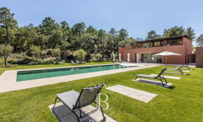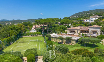 A quelques minutes du village de Grimaud, maison de charme de 270 m2 et sa maison d'invités de 80m2, soigneusement décorées, sur un terrain de 2000m2. 7 chambres et 5 salles de bains. Salle de jeux. Salle de sport. Ping-pong. 2 Piscines Numéro d'enregistrement 83068000606M9