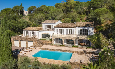 La Villa surplombe tout le golfe de Saint-Tropez, et dévoile une vue panoramique et époustouflante sur la mer, les collines environnantes et le village mythique de Saint-Tropez. En position ultra dominante, exposée plein sud et baignée de lumière, cette magnifique propriété est nichée au cœur de l’un des quartiers les plus recherchés de Grimaud, dans un domaine fermé et sécurisé. Construite en 1972, la Villa est inspirée par le fruit du travail du célèbre architecte Jacques Couëlle, dont l’œuvre est marquée par le mouvement de l’architecture-sculpture. La Villa est un chef-d’œuvre, tant sur le plan architectural que dans les prestations luxueuses qu’elle vous offre. Elle a su conserver son charme intemporel, son authenticité et son caractère des années 70’s, avec des prestations et équipements contemporains, ceci afin d’offrir un confort optimal à ses occupants. Si la vue à couper le souffle capte tous les regards depuis chaque espace de la villa, il existe de nombreuses terrasses et coins intimes et ombragés, qui filent sur la Méditerranée, et qui occupera journées de farniente et soirées festives. Un jacuzzi sur la terrasse principale de plus de 160 m² offre un moment de détente unique. Les 660m² d’intérieurs ont été pensés jusqu’au moindre détail par une architecte d’intérieur, révélant une décoration unique et soignée, dont l’élégance est symbolisée par l’usage quasi systématique du blanc, et ponctuée de choix architecturaux comme le sublime salon et la chambre Master aux formes arrondis et offrant une vue exceptionnelle de carte postale sur tout le golfe de Saint-Tropez. La générosité est également encouragée, notamment au sein de la cuisine et de la salle à manger ouvertes sur le golfe, et qui inspire des moments de gourmandise partagée autour de la grande table ombragée de la terrasse, ou du coin lounge. Pour offrir des nuits paisibles aux 12 voyageurs privilégiés, six chambres en-suite dévoilent une décoration sobre et épurée. La Villa jouit par ailleurs d’un extérieur tout aussi riche, qui se déploie sur plus de 2000m² d’un jardin méditerranéen. En bas du jardin, un terrain de pétanque sera un lieu de convivialité, particulièrement à l’heure du traditionnel apéritif méditerranéen. Les plus sportifs pourront profiter de la table de Ping-Pong, du Baby Foot, de la piscine chauffée, et de la salle de sport équipée avec du matériel TechnoGym. La Villa est la promesse de vacances sur un nuage, propice à l’intimité, à la contemplation, à l’amusement, à la détente, tout en étant à proximité immédiate des plages, du renommé Golf de Grimaud, et des villages de Sainte-Maxime et de Saint-Tropez. Selon la durée du séjour, la location de la villa inclus un déplacement aller-retour en bateau taxi privé du ponton de l’hôtel de Beauvallon (à 5min de la Villa) vers le Port de Saint-Tropez ou une balade en bateau de 3 heures dans le golfe de Saint-Tropez et ses alentours