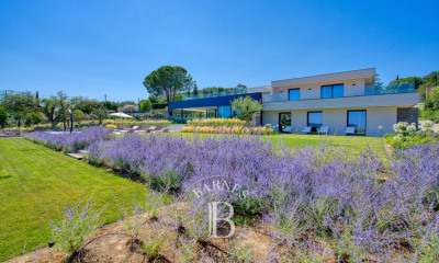 Bienvenue dans cette magnifique villa située au cœur de la pinède à Grimaud, offrant une vue imprenable sur les collines verdoyantes et les vignobles environnants. Ce havre de paix est un véritable oasis de tranquillité, entouré d'une végétation luxuriante, dans un cadre préservé et intime. La villa, de style néo-provençal, s'intègre harmonieusement dans son environnement naturel. Son grand parc magnifiquement arboré crée une atmosphère apaisante et offre de nombreuses possibilités de détente en extérieur. Vous pourrez profiter d'une grande piscine cristalline, entourée de terrasses spacieuses, et d'un pool house aménagé, comprenant un coin cuisine et un barbecue pour des moments conviviaux en famille ou entre amis. À l'intérieur, la villa se compose d'un lumineux séjour qui s'ouvre sur l'extérieur, créant une belle continuité entre les espaces de vie et le jardin. La cuisine équipée, moderne et fonctionnelle, répondra à toutes vos attentes. La villa dispose de cinq chambres, chacune avec sa propre salle de bains et toilettes, garantissant confort et intimité à tous les occupants. Cette villa est un lieu d'exception, où la beauté du paysage se mêle au confort et à l'élégance, offrant un cadre de vie idyllique pour des moments inoubliables.