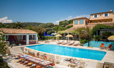 Située au cœur de quatre hectares de vignes sur la commune de Grimaud, cette ancienne ferme entièrement rénovée en domaine viticole serait une propriété parfaite pour des vacances en famille au calme. La propriété est composée comme suit : - Niveau R+1 : Une entrée Une chambre de Maîtres (lit 200X200) avec une salle de bain complète (baignoire/ douche/ WC/ double vasques) ainsi qu’un dressing Une chambre 1 : (lit 180X200) avec un dressing. Une salle de douche (WC/ vasque) Une chambre 2 : (lit 180X200) avec un dressing. Une chambre 3 : (lit 180X200) avec un dressing. Une salle de douche (WC/ vasque) attenante pour les chambres 2 et 3. - Niveau rez-de-chaussée : Une vaste pièce à vivre comprenant un salon TV et une salle à manger offrant une vue panoramique sur les vignes et les collines et ouvrant sur une terrasse. Une cuisine parfaitement équipée avec cuisine ouvrant sur une terrasse couverte avec salon et table à manger. Le cuisine est possède également un back-office / buanderie. Une chambre indépendante : (lit 180X200) avec dressing. Une salle de douche (WC/ vasque) - Equipements : Une piscine (4X15 avec jet stream) avec douche extérieure, un terrain de pétanque, un car pool, un système de refroidissement par le sol (niveau rez-de-chaussée), climatisation dans les chambres et système d’alarme.