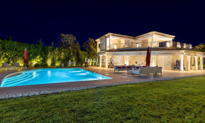 Idéalement située dans le Domaine de Beauvallon Bartole, cette villa de 6 chambres doubles, avec salles de bain privées, est implantée sur un terrain paysagé de 4400m2. Répartie sur deux étages, la maison est équipée de deux cuisines tout équipées, d'une grande salle à manger entourée de baies vitrées et de deux jolis salons. La propriété est élégamment décorée dans un style qui allie le charme provençal au confort moderne, grâce au système de climatisation dans toutes les chambres. Avec une exposition Est, la villa reste baignée de lumière toute la journée grâce à de grandes baies vitrées. A l'extérieur, une grande piscine de 12 mètres de long vient agrémenter le jardin, avec une douche extérieure et un pool house tout équipé pouvant accueillir jusqu'à 12 convives. Une jolie fontaine rappelle l'esthétique art-déco, tandis que des bougainvilliers parcourent la façade au niveau de l'entrée principale. Les accès au cours de golf, de tennis et au ponton privé sont facilités grâce au système d'adhésion du domaine. Toutes les conditions sont réunies pour un séjour idéal, dans un cadre enchanteur et propice à la détente, avec une vue panoramique sur le Golfe de Saint-Tropez.