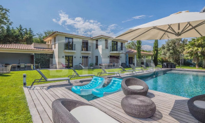 Cette villa d'environ 380 m² située dans un domaine prisé de Grimaud offre une expérience de vie luxueuse. Entièrement rénovée avec des finitions haut de gamme, elle se compose d'un salon spacieux ainsi que d'une cuisine équipée ouverte sur une salle à manger. La villa compte six chambres en suite dans la maison. Le terrain offre de nombreux espaces de détente, de plusieurs terrasses d'extérieures, un terrain de pétanque ainsi qu'une piscine. Services inclus : ménage régulier, linge de maison, linge de piscine et service conciergerie BARNES personnalisé Les informations sur les risques auxquels ce bien est exposé sont disponibles sur le site Géorisques :