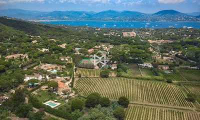 Idéalement située dans la presqu'île de Saint-Tropez, à mi-chemin entre Saint Tropez et Ramatuelle, proche des plages de Pampelonne . Villa récente de 220 m² de type contemporain. Sise sur un terrain de 3 500 m², environnement très calme pour cette maison tournée vers la nature à l'ombre d'une pinède de pins parasols. Voiles d'ombrage sur la terrasse. Piscine chauffée, pool house équipé (bbq, cuisine d'été) Climatisation. 5 chambres-5 salles de bains. Numéro d'enregistrement 83101000360EM