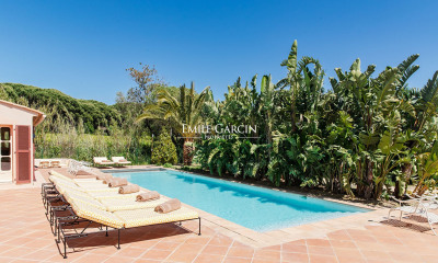 Idéalement située à quelques minutes à pied des plages de Pampelone, une magnifique propriété d'environs 350m2 édifiée sur un grand terrain plat et arboré d'environ 8 000m2. Cette villa aux prestations haut de gamme se compose d'un vaste salon cathédrale au style moderne et contemporain, une cuisine totalement équipée, donnant sur les terrasses, une piscine et un parc arboré au senteurs méditerranéenne. Elle dispose également de 5 chambres en suite décorées avec gout. Équipement: abris voiture, vélos, emplacements voitures, coin cinéma/détente, alarme. Numéro d'agrément : 83101000567NZ