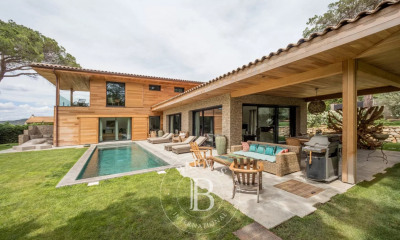 Cette belle propriété, rénovée et redécorée, offre tout le confort nécessaire pour un séjour de détente à Saint-Tropez. C’est l’endroit idéal pour les amoureux de la campagne qui veulent être à proximité des célèbres plages de Pampelonne. Le confort intérieur moderne se complète par d’excellents aménagements extérieurs (terrain de pétanque, une grande piscine et un court de tennis), le tout couronné par une vue magnifique sur la campagne et la mer.
