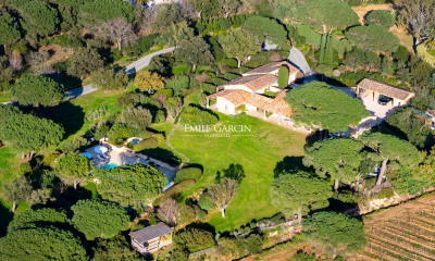 Magnifique villa de 350m² sur un terrain de plus de 2 hectares surplombant la plaine de Ramatuelle et offrant une magnifique vue sur la baie de Pampelonne et la mer. La villa se compose d'une entrée avec une grande pièce à vivre avec belle hauteur sous plafond, poutres, cheminée, une salle à manger, une cuisine séparée avec arrière-cuisine, une très grande terrasse couverte et découverte, 2 grandes chambres en suite avec salle de bains et douche, wc, placards chacune. En rez-de jardin 4 chambres en suite avec salle de bains ou salle de douche et wc avec accès sur une grande terrasse couverte avec vue mer. Par un autre escalier venant de la cuisine une partie cave, buanderie et rangement avec accès sur l’extérieur. Un garage pour 2 voiture avec accès de la maison. 2 portails pour accéder l’un à la maison avec parking et l’autre au garage avec parking. Elle profite d'une grande piscine 11 x 6 mètres. Dans un écrin de verdure, la maison est située au calme et sans vis-a vis. Prix pour 12 pers par semaine : Juin/septembre : 12000 € + 6h de ménage Juillet/août : 14400€ + 6h de ménage