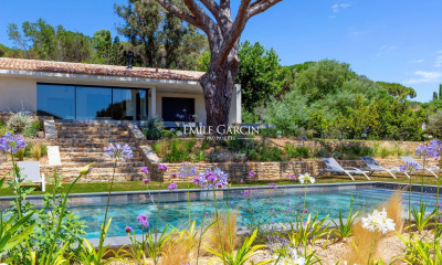 Située dans la campagne de Ramatuelle, cette villa contemporaine d'environ 250m² est au cœur des pins parasols et des vignes. Elle se compose d'un grand salon, d'une salle à manger, d'une cuisine américaine ouverte sur la terrasse, d'une chambre de Maître avec sa salle de bains et son dressing, de deux chambres doubles en suite ainsi que de deux chambres indépendantes avec chacune leur salle de douche. En extérieur, un jardin joliment arboré, de belles terrasses, un salon d'été, un pool house ainsi qu'un terrain de pétanque. Équipements : Climatisation, WIFI, alarme, places de parking. Services inclus : Ménage, linge de maison, linge de piscine et service de conciergerie BARNES personnalisé. « Les informations sur les risques auxquels ce bien est exposé sont disponibles sur le site Géorisques : » DPE en cours Bien situé dans une zone soumise à l'obligation de débroussaillement.