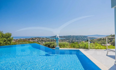 Location de maisons avec piscine et vue sur mer à Sainte-Maxime. Jolie villa avec piscine et très belle vue sur mer à louer pour 10 personnes dans le secteur résidentiel de la Nartelle, à proximité des plages et de la mer. Cette belle villa entièrement rénovée en 2024, dispose d'une magnifique vue sur mer et d'une immense terrasse de réception en partie couverte dominant la piscine. Disposant de deux niveaux indépendants entièrement climatisés, vous trouverez au niveau principal: une entrée, une grande salle de séjour salon avec cuisine ouverte ouvrant sur une très belle terrasse faisant face à la mer, 3 chambres ayant chacune une salle d'eau et un wc en suite. Au rez de piscine, vous disposerez, d'un appartement indépendant disposant de 2 chambres équipées de salles d'eau et wc, d'un coin séjour avec petite cuisine US, le tout ouvrant sur une belle terrasse face à la piscine. 2 à 3 places de parking à l'intérieur de la propriété et 1 place privative en extérieur. Un emplacement idéal dans un secteur résidentiel calme, à deux pas des plages et de la mer pour des vacances réussies ! Linge de maison en option Animaux non admis sauf autorisation préalable. Prix basse saison 4.365 €/semaine. Prix de mai, juin et septembre 5.598 €/semaine. Prix de juillet et d'août : 7.652 €/semaine. Périodes et disponibilités : nous contacter à ou Numéro d'enregistrement : 83115005063WR