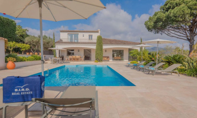 * Villa Camélia * Idéalement située à proximité des plages et du centre-ville, charmante maison rénovée d'environ 300 m². Au rez-de-chaussée, un espace salon, salle à manger ouvert sur une cuisine entièrement équipée. Une chambre en suite avec dressing, salle de bains et son accès à la terrasse. Au rez-de-jardin, une chambre équipée d'une salle de douches avec coin kitchenette et un accès terrasse/jardin, deux chambres, une salle de bains ainsi qu'une buanderie. À l'étage, deux chambres avec une salle de douches. En extérieur, de nombreux espaces aménagés, une piscine ainsi qu'un espace fitness. Équipements : Climatisation dans toute la propriété, portail électrique. Service inclus : Ménage d'entrée, linge de maison et service de conciergerie BARNES personnalisé. N hébergement : 83115005200SB