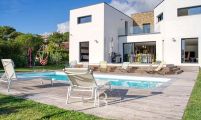 * Villa Koh Phi Phi * Située dans un environnement calme sur la commune de Saint-Aygulf, cette propriété moderne de 180 m² offre une vue panoramique sur la mer. La propriété se compose d’une cuisine équipée, un séjour, une salle à manger ainsi que de quatre chambres avec chacune sa salle d’eau. En rez de jardin, une chambre/dortoir avec salle de douche. Equipements : Piscine, WIFI, climatisation. Service inclus : Ménage d’entrée, service de conciergerie BARNES personnalisé. Numéro d'enregistrement : FJS1785HT0061