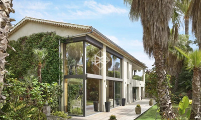 Splendid Villa 6 chambres vue mer Cap D'Antibes entièrement rénové en 2023. Superficie Habitable: 300 mètres carrés. Superficie du terrain: 1500 mètres carrés. 1 salon - salle à manger - cuisine. 6 chambres. 5 salles de Bain. 1 piscine. Capacité: 12 personnes. -- Rez-de-jardin: Entrée. Chambre 1: 1 lit double, salle de bain avec douche et wc. Chambre 2: 1 lit double, salle de bain avec douche et wc. Chambre 3: 1 lit double, salle de bain avec douche et wc. Chambre 4: 1 lit double. Chambre 5: 1 lit double. Salle de bain avec douche et baignoire partagée pour les chambres 4 & 5. Buanderie. Toilettes invités. 1er étage: Vaste salon lumineux vue mer avec TV, grande table de salle a manger avec accès terrasse, cuisine ouverte. Chambre 6: (Master): 1 lit double, dressing, salle de bain avec baignoire, douche et wc, terrasse. Extérieur: Une piscine avec système d'alarme. Garage fermé 1 voiture. Terrain de pétanque. Autres prestations: Climatisation réversible dans toutes les pièces. Alarme. Enceintes Devialet. Internet. Coffres-forts.