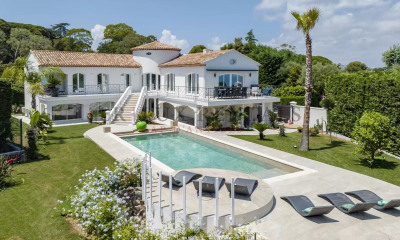 Située dans un petit domaine privé, cette propriété se trouve à proximité immédiate de la mer et de la fameuse plage de la Garoupe. Entièrement rénovée, la villa comprend en rez-de-chaussée: une cuisine équipée, une salle à manger, une salle de réception avec cheminée, un bureau avec salle de TV, toilette invités, une chambre principale avec salle de bains complète et deux autres chambres avec salles de douches en suite. Au niveau de la piscine se trouvent une chambre avec salle de bains en suite et accès au jardin, une autre chambre avec salle de douches séparée et un logement pour le personnel. Jardin paysager avec piscine, terrasses, lounge et un aire de jeux pour les enfants complètent cette propriété. Les prix varient en fonction de la période de location : nous vous invitons à nous consulter pour toute demande de tarification. Veuillez noter que des frais de location supplémentaires s’appliquent. Honoraires d’agence à la charge du locataire. Barème des honoraires de location disponible en ligne et sur demande. Veuillez noter que le plan n’indique pas l’emplacement précis du bien et que toutes les mesures sont approximatives, les informations sont fournies à titre indicatif uniquement.