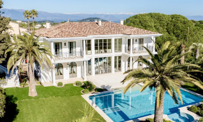 Location saisonnière - Luxueuse villa contemporaine vue mer Villa moderne de 5 chambres avec piscine chauffée intérieure et extérieure, salle de sport, hammam, salle de cinéma. Rez de jardin : Entrée dans la propriété par un jardin arboré d’oliviers, palmier et plantes méditerranéennes. Hall d’entrée spacieux s’ouvrant sur un salon/salle à manger moderne, vue mer et piscine. Toilette d’invité avec vestiaire. Grand coin salon avec baies vitrées électroniques donnant sur le jardin et la piscine, 2 canapés, télévision et cheminée à l’éthanol. Salle à manger avec une grande table pour 10 personnes et cuisine ouverte totalement équipée : réfrigérateur américain, four micro-onde, four, machine à café Siemens, lave-vaisselle, plaque à induction, cave à vin et un bel îlot central finissant en table haute pour 5 personnes. Chambre N°1 : lit double (180cm), dressing, salle de douche avec douche italienne, double vasque et toilette. Chambre N°2 : lit double (180cm) accès direct jardin et piscine, dressing, salle de bain avec baignoire, douche italienne, double vasque et toilette. 1er étage : Chambre N°3 : Suite indépendante avec un petit salon (2 fauteuils), donnant sur une terrasse privée (17x4m) vue mer et jardin, et deux salles de bain : une salle de douche avec douche italienne, dressing, toilette et une autre salle de bain avec baignoire et douche italienne, dressing, toilette. Chambre N°4 : lit double (180cm) vue colline, dressing, salle de douche avec douche italienne, double vasque, toilette indépendante. Chambre N°5 : lit double (180cms) vue colline, dressing, salle de douche avec douche italienne, double vasque, toilette. Sous-sol : Piscine intérieure chauffée, salle de sport. Hammam avec salle de douche et toilette indépendante. Cave à vin. Salle de cinéma / Chambre N° 6 lit double ( 160cm ) équipée de 2 canapés. salle de douche avec toilettes. Buanderie avec machine à laver et sèche-linge. Extérieur : Jardin arboré d’oliviers. Piscine de 16x5m. Salon d’été équipé de 2 canapés, 4 fauteuils, 2 tables basses, 4 chaises, 2 parasols. Autres prestations : Climatisation, Wi-Fi, garage. Équipée pour 10 personnes.