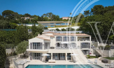 Propriété dans un Domaine Privé dans le prestigieux quartier de la Californie à Cannes. La propriété fait 362m2 sur un terrain plat de 1500m2 avec une exposition Sud-Est. Elle dispose d'une vue Mer dégagée et est à l'abris des regards. Entrée : Salon ouvert Cuisine ouverte avec une arrière cuisine Salle à manger Une 1e chambre avec un lit en 180x200 Salle de bain attenante Rez-de-Jardin: Un deuxième salon Une 2e chambre avec un lit en 140x200 avec salle de douche Une 3e chambre avec un canapé lit en 140x200 possibilité de transformer la chambre en salle de sport. Une 4e chambre 160x200 accès direct sur le jardin avec salle de bain La Master lit en 180x200 , avec un très grand dressing, une salle de bain avec douche accès direct sur le jardin Le jardin : Piscine de 15X5, chauffée, avec système d'alarme. Équipement de surveillance: Alarme périphérique ainsi que dans la maison un double sass d'entrée Un domaine privé avec caméra de surveillance à l'entrée La villa est entièrement climatisé et dispose d'un sol rafraîchissant Un garage de 45m2 fermé avec accès direct dans la propriété
