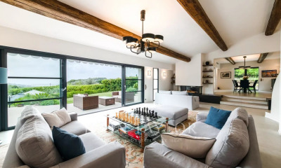 Située dans un environnement calme et recherché, cette belle villa de 490 m², entièrement climatisée et sécurisée, offre des prestations de qualité et se compose comme suit : Rez-de-jardin : Hall d'entrée Toilettes d'invités Salon lumineux Salle de cinéma Buanderie Salle de sport Appartement indépendant pour le personnel Rez-de-chaussée : Cuisine entièrement équipée Salle à manger conviviale Chambre n°1 – Suite parentale : avec salle de bains/douche, WC et dressing À l'étage : Chambre n°2 : lit 120 cm, salle de douche et WC Chambre n°3 : en suite avec salle de douche Chambre n°4 : en suite avec salle de douche et WC Extérieurs et commodités : Piscine à débordement sécurisée Jacuzzi Trampoline Un lieu idéal pour profiter pleinement de la douceur de vivre à Mougins, dans un cadre élégant et serein. Les informations sur les risques auxquels ce bien est exposé sont disponibles sur le site Géorisques :