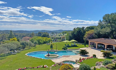 Cette très belle villa contemporaine d'environ 350 m² de surface habitable et dotée d'équipements haut de gamme sera idéale pour une famille souhaitant passer de belles vacances sur la Côte d'Azur. Elle est située à pied du vieux village de Mougins, à proximité de toutes les commodités. Elle comprend : Rez-de-chaussée : - Spacieux hall d'entrée, - Salon d'environ 100 m² avec espace TV, système audio et cheminée, accès à la terrasse et au pool-house avec barbecue, - Cuisine Américaine entièrement équipée avec îlot central et coin repas, - Salle à manger, - Chambre de maître : lit double, salle de bains, dressing, terrasse. - Chambre n°2 : lit double, salle de douche, dressing. 1er étage : - Chambre n°3 : lit double, salle de bains, dressing. Rez-de-jardin : - Chambres n°4 et n°5 : lits doubles avec salles de douche ensuite, - Salle de cinéma, - Salle de sport et sauna, - Buanderie et garage. Aménagements extérieurs : - Jardin paysager ; - Piscine à débordement ; - Plusieurs espaces de détente avec chaises longues et mobilier de jardin ; - Parking. Les informations sur les risques auxquels ce bien est exposé sont disponibles sur le site Géorisques :
