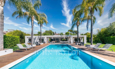Cette belle bastide en pierre conçue par le célèbre architecte André Svetchine est située au cœur d'un prestigieux domaine privé à Mougins, près du Parc de l'Etang. Cette villa de 380 m² dispose d'un salon ouvert, d'une cuisine professionnelle, de 6 chambres en suite. Un magnifique jardin avec plusieurs espaces de détente et de relaxation sous les arbres. Située sur un terrain plat de 2 000 m² avec piscine chauffée, pétanque, tennis de table et belles terrasses avec barbecue. Vue panoramique sur Cannes, la mer et les montagnes environnantes. A environ 15 minutes du centre ville de Cannes en voiture. Plusieurs places de parking.