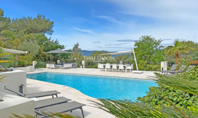 Idéalement située à quelques minutes des commerces et du charmant village de Mougins, cette sublime villa contemporaine offre de belles prestations. La villa se compose comme suit : Rez-de-chaussée : - Une vaste pièce de vie lumineuse comprenant un salon, une salle à manger et une cuisine familiale entièrement équipée - Chambre 1 : la suite parentale, avec dressing, salle de bains/douche et toilettes Rez-de-jardin : - Chambre 2 : en suite, avec salle de douche et toilettes - Chambre 3 : en suite, avec salle de douche et toilettes - Chambre 4 : en suite, avec salle de bains/douche et toilettes Espaces extérieurs : Un magnifique jardin paysager agrémenté d’une piscine à débordement, ainsi que de plusieurs espaces de détente et de repas en plein air.