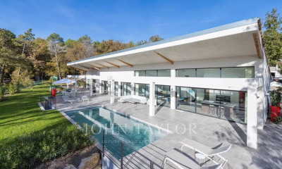 Villa de style néo-provençal comprenant une entrée, un salon très lumineux avec cheminée, une salle à manger, une cuisine entièrement équipée, une véranda, le tout de plain-pied ouvrant sur la terrasse exposée plein Sud. 5 chambres, dont une Master en suite avec salle de bains, deux autres chambres en rez-de-jardin qui se partagent une salle de douche. A l'étage, 2 chambres climatisées partagent une salle de douche. La villa implantée sur un terrain plat dispose d'une grande piscine trônant au centre de la propriété, et offre une vue sur le Parc des Courmettes ainsi que plusieurs espaces extérieurs qui invitent à la détente. Cette villa de charme située dans un quartier calme à 5 minutes du centre Roquefort-les-Pins et seulement 10 minutes du village pittoresque de Valbonne est idéale pour des vacances en famille.