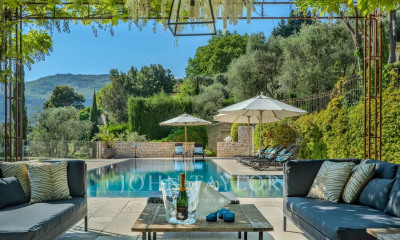 Située dans un environnement exceptionnel à Châteauneuf-Grasse, cette propriété de charme bénéficie d'un calme absolu et d'une vue imprenable sur les montagnes et le village du Bar-sur-Loup, tout en étant à proximité immédiate des commerces et commodités. Rénovée avec des matériaux de qualité et un goût raffiné, la villa se compose d'une cuisine moderne et équipée avec coin repas, ouverte sur le jardin et l'espace de vie extérieur, un vaste salon/salle à manger, un home cinéma, et un bureau lumineux, une chambre/studio indépendante au rez-de-chaussée, idéale pour accueillir amis ou personnel. À l'étage : Suite parentale avec balcon privé et vue panoramique, 3 chambres supplémentaires en suite, chacune avec salle de bains. Les extérieurs offrent un cadre méditerranéen idyllique : Jardin paysager de 16 000 m², Piscine à débordement de 15 mètres, Pool house aménagé pour la détente et les réceptions. Les informations sur les risques auxquels ce bien est exposé sont disponibles sur le site Géorisques :