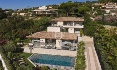 * Villa Lorea * Située dans un quartier calme de Sainte-Maxime, villa provençale de 325 m² construite dans les années 2000. Au rez-de-chaussée, un salon ouvert sur une salle à manger, une cuisine équipée ainsi qu'une buanderie. Trois chambres, une salle de bains et une salle de douches. À l'étage, une chambre avec salle de douches et accès terrasse. Une seconde chambre avec baignoire, douche, dressing et accès à la terrasse. En extérieur, un double garage, une piscine, un terrain de pétanque ainsi qu'une cuisine d'été. Équipements : Climatisation dans toute la propriété, vidéo surveillance, alarme, parking, barbecue au bois, plancha électrique. Service inclus : Ménage, linge de maison, service de conciergerie BARNES personnalisé. Numéro d'hébergement: 83115004611NH