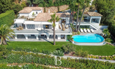 * Villa Stella * Située dans un environnement préservé et calme, dans un des secteurs les plus prisés de Sainte-Maxime à proximité de Saint-Tropez, cette propriété d’exception de 550 m² offre une vue panoramique sur la mer et sur le Golfe de Saint-Tropez. La propriété se compose d’une cuisine principale et d’une seconde cuisine aménagée, d’une pièce de vie spacieuse et lumineuse, d’un espace bibliothèque, de six chambres en suite avec chacune sa salle d’eau. En extérieur, un jardin joliment arboré, de larges et agréables terrasses aménagées, de nombreux espaces détente ainsi qu’une piscine au sel chauffée (sur demande et en supplément) et sécurisée. Équipements : Système d’alarme et de vidéo-surveillance, climatisation, ascenseur, parking pour plusieurs voitures, portail électrique. Numéro d'enregistrement 83115003561NH