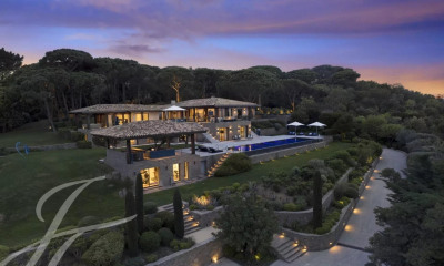 Au cœur d'un domaine fermé, dans l'un des quartiers les plus recherchés de Saint-Tropez, propriété moderne d'exception jouissant d'une vue à couper le souffle sur la baie des Canebiers et Pampelonne. Véritable bijou architectural aux lignes épurées, réalisé par l'architecte de renom Vieillecroze, reconnu pour ses réalisations modernes et contemporaines. En position dominante, la villa d'une superficie totale de 775 m² propose notamment 9 suites, et des espaces de vie aux volumes généreux permettant de profiter pleinement du panorama exceptionnel. Prestations très haut de gamme, matériaux de première qualité (marbre, verre, pierre naturelle, bois ..), salle de sport, sauna et un beau patio. Avec un parc paysager de 14 000 m², les espaces extérieurs jouissent d'un cadre verdoyant avec la mer pour horizon, avec une piscine chauffée de 20 mètres de long, un pool house et un bar. Garage. Chambre froide. Cave à vin. Domotique. Caméras de surveillance. Une somptueuse villa aux prestations très haut de gamme et à la vue mer époustouflante. Numéro d'agrément : 83119002279MX