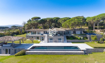 Cette propriété exceptionnelle bénéficiant d'une superbe vue dégagée sur la mer et le village, est idéalement située dans les hauteurs de Saint-Tropez, à quelque instants à pied de la célèbre place des Lices et du port. La villa, pleine de charme et désignée par Giorgio Armani, se distingue par son style unique et intemporel, ainsi que ses finitions luxueuses. Elle se compose d'un magnifique séjour-salle à manger, une cuisine entièrement équipée, cinq chambres avec leur salle de bains et toilettes en suite dont une chambre de maître. L'ensemble donne sur un ravissant jardin paysager abritant une piscine chauffée. Elle dispose également d'une maison indépendante avec une chambre et sa salle de bains. N° agrément : 83119006220HT