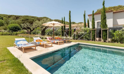 Magnifique villa neuve au calme et également proche du centre de Saint-Tropez. Elle se compose d'une belle pièce de vie très lumineuse, une salle à manger, une cuisine entièrement équipée, 5 chambres en suite avec chacune leur salle d'eau, un studio indépendant. Elle bénéficie de tout le confort et de l'équipement nécessaire ainsi que des prestations de qualité. N° d'agrément : 83119005439DP