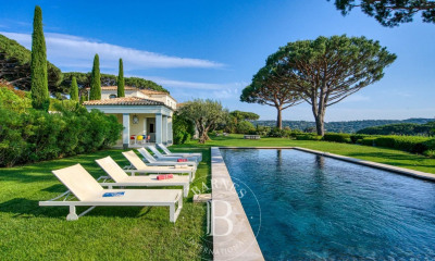 Située dans le domaine privé et sécurisé des Parcs de Saint-Tropez, cette charmante villa provençale offre une superbe vue sur la baie des Canebiers. Elle se compose d'une belle pièce de vie donnant directement sur la terrasse, d'une cuisine entièrement équipée ainsi que de cinq chambres en suite. En extérieur, un jardin joliment arboré, une jolie terrasse aménagée ainsi qu'une belle piscine à débordement. Equipements : Climatisation, WIFI, ascenseur, alarme, coffre-fort, places de parking. Services inclus : Ménage, linge de maison, linge de piscine et service de conciergerie BARNES personnalisé. Numéro de loueur meublé : « Les informations sur les risques auxquels ce bien est exposé sont disponibles sur le site Géorisques : » DPE en cours : Bien situé dans une zone soumise à l'obligation de débroussaillement.