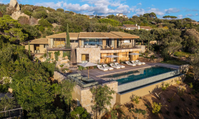 Référence Agence : SGS-313 DISPONIBILITÉS - SAISON - 2026 - Du 28 mars au 6 juin - Du 28 juin au 8 août - Du 15 août au 31 octobre. Villa contemporaine de plain-pied entièrement climatisée située dans un petit domaine privé à la situation exceptionnelle, « pieds dans l’eau » sur la plage de Santa-Giulia avec portillon privatif sécurisé. La villa :entrée avec vestiaire, WC d'invités avec vasque, vaste salon-séjour s’ouvrant sur la terrasse et le jardin comprenant un salon avec T.V, une salle à manger et une cuisine ouverte équipée. Coté nuit, 3 chambres avec salle d'eau respective. Les extérieurs : grande terrasse aménagée avec transats, salon extérieur et salle à manger d’été (barbecue à gaz) et douche extérieure.