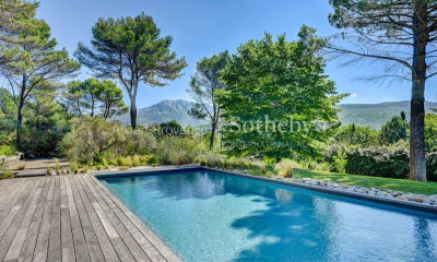 Le Mas du Montaiguet, dans un écrin de calme absolu, offre l'alliance du charme de l'ancien au confort du contemporain. Cette agréable propriété, surplombant la ville d'Aix-en-Provence et nous offrant une vue imprenable sur la Sainte-Victoire, sait arrêter le temps pour un séjour des plus reposants. Un parc paysager de 9 hectares, un jardin japonais zen, un espace détente avec cuisine équipée, hamac. 5 Chambres - 3 Salles de bains, capacité 10 personnes maximum. Piscine de 20 x 3 m, chauffée, sécurisée par une alarme.