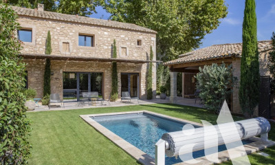 Combinant charme, authenticité et modernité, cette majestueuse maison de maître du 18e siècle, offre un cadre de vacances prestigieux au cœur de la Vallée des Baux de Provence. Dans le parc de 3.5 hectares, entre platanes et oliviers centenaires, les jardins à la française, la grande piscine chauffée, de belles terrasses et pergolas, le court de tennis, le potager, et le très beau bassin avec sa fontaine emblématique, invitent à profiter de la quiétude et la beauté des lieux. Récemment rénové par des architectes de renom, ce mas provençal de 840 m2 s'étend sur 3 niveaux, accessibles par le magistrale escalier en marbre ou par un ascenseur. Au rez-de-chaussée, un spacieux séjour vouté avec une impressionnante cheminée en pierre, un magnifique salon d'été avec vue sur les jardins, un bar bibliothèque, la salle à manger et la cuisine, ainsi qu'une seconde cuisine de service entièrement équipée pour qu'un chef vous fasse découvrir les saveurs locales. Les 8 chambres, toutes climatisées et très confortables, se trouvent à l'étage. Chacune dispose d'une salle de bain ou salle d'eau avec douche à l'italienne, d'une télévision, d'une cafetière Nespresso, et boissons ou minibar. Un grand salon cinéma et bar avec babyfoot, ainsi que le spa avec sauna et salle de massage, ou encore l'espace fitness permettent de se détendre et de partager des moments privilégiés entre amis ou en famille. Avec un excellent service, tout est réuni pour rendre vos vacances en Provence inoubliables ! Service inclus : Accueil et service personnalisé, Ménage quotidien, Petit-déjeuner Sur demande : Chef, Coach sportif, Professeur de Yoga, Massages, Transferts… A proximité : Maussane les Alpilles Paradou 3 Kms Les Baux de Provence 11 Kms Saint Rémy de Provence 12 Kms Cette luxueuse propriété vous est proposée par Saint-Rémy-de-Provence - Sotheby's International Realty, spécialiste de la location saisonnière de prestige en Provence.