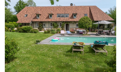 En Normandie, à Vauville, dans la campagne deauvillaise, aux portes de Deauville. Emile Garcin vous propose en location saisonnière, une splendide propriété de 10 pièces principales d'environ 600 m² habitables avec 1 hectare de terrain, piscine extérieure chauffée et sécurisée avec terrains de tennis et de foot. Très belles prestations. Capacité de couchages jusqu'à 20 personnes. Séjour de 7 jours minimum. Dossier complet sur demande