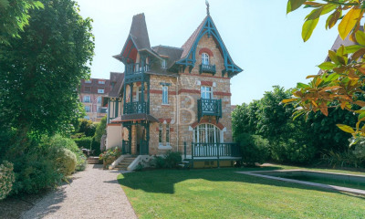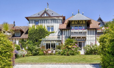 En Normandie, à Benerville-sur-Mer, à 5 minutes du centre de Deauville. Emile Garcin vous propose en location saisonnière, une propriété d'environ 350 m² avec accès direct à la plage. La maison bénéficie de 4 chambres, de 4 salles de bains/douches, de 4 toilettes, d'un séjour-salle à manger avec terrasse et vue mer. La dépendance dispose d'un séjour avec balcons, d'une 5ème chambre avec salle de douche et toilette. Belles prestations, excellente situation géographique, (à partir de 8 750 €/semaine). Dossier complet sur demande.
