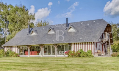 En Normandie, à Saint Gatien des Bois à 20 minutes de Deauville. Emile Garcin vous propose à la location saisonnière une superbe propriété style normande d'environ 280 m² , le tout sur 1,4 hectares de terrain avec piscine et vue sur les pommiers. Au rez-de-chaussée, deux grandes réception ouvertes sur la terrasse et le jardin, une très belle cuisine entièrement équipée avec salle à manger ouverte, une chambre double avec salle de douches indépendante. Au premier étage, cinq chambres dont trois doubles, avec quatre salles de douches. Idéal pour un séjour en famille dans le calme. Dossier complet sur demande.