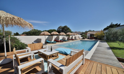 Au coeur du quartier authentique des Grenettes à Sainte Marie, cette maison de famille neuve de 250 m2 sur un terrain de 5 000 m2 dispose de 6 chambres doubles pouvant accueillir 10 à 12 personnes. La maison est articulée en une maison indépendante et deux îlots indépendants permettant une cohabitation idéale pour séjourner en famille avec de grands enfants où à plusieurs familles. Baignée de lumière toute la journée, ses baies vitrées ouvertes sur la terrasse de la piscine privée de 12 mètres et un terrain de tennis privé créent une atmosphère idyllique pour profiter de chaque moment. ESPACES DE VIE * Grand salon/salle à manger convivial * Une table à manger pour 10 convives * Cuisine équipée ouverte sur la salle à manger * Un espace bureau pour les télétravailleurs * Un boulodrome pour de belles soirées d'été * Un préau abritant une table à manger extérieure pour 10 CHAMBRES (6), SALLES DE BAIN (5) et WC (4) Maison principale : * Chambre 1 : Suite parentale donnant sur la piscine, lit 160cm, avec salle de bains privée et WC ensuite * Chambres 2 & 3 : 2 chambres doubles donnant sur le jardin, lits 140cm, se partageant une salle d'eau et un WC * Chambre 4 : Chambre double (lit 160cm) avec salle d'eau ensuite Deuxième ilot donnant sur la piscine : * Un salon avec cuisine ouverte toute équipée * Chambre 5 : Une chambre avec un lit double de 160cm, une salle d'eau et un WC Troisième ilot donnant sur la piscine * Chambre 6 : Une chambre avec un lit double de 140cm, une salle d'eau et un WC LES EXTERIEURS * Immense jardin de 5 000m2 * Table à manger pour 12 personnes * Barbecue * Piscine chauffée de 12 x 6m équipée d'un plongeoir sécurisée par un volet roulant * Un jacuzzi 4 places * Un terrain de tennis privé PARKING * Possibilité de garer quatre véhicules au sein de la propriété * Stationnement facile et gratuit dans la rue